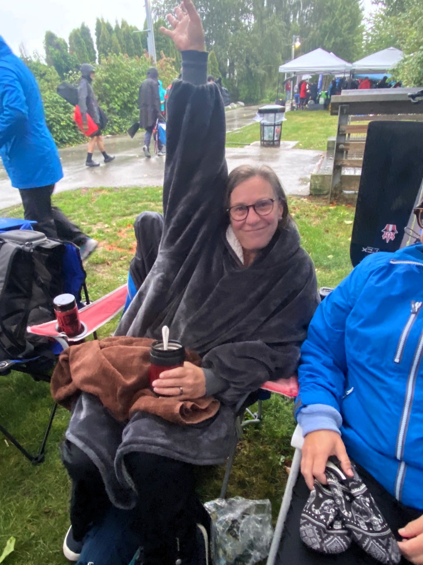 Even the rain doesn't dampen certain "elite" athlete's spirits.