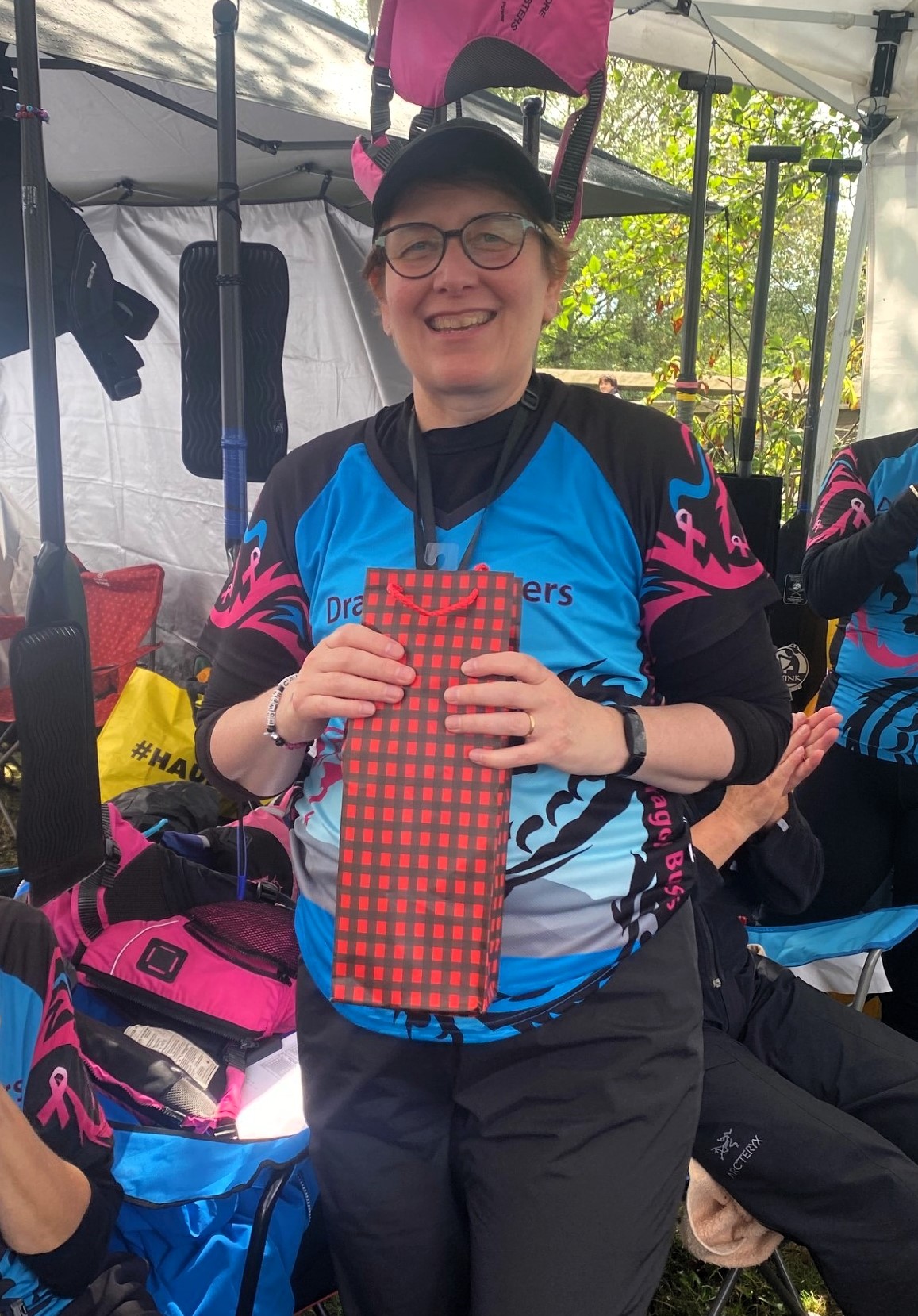 Receiving her swag bag of goodies after competing in her first regatta. Congratulations B!!!