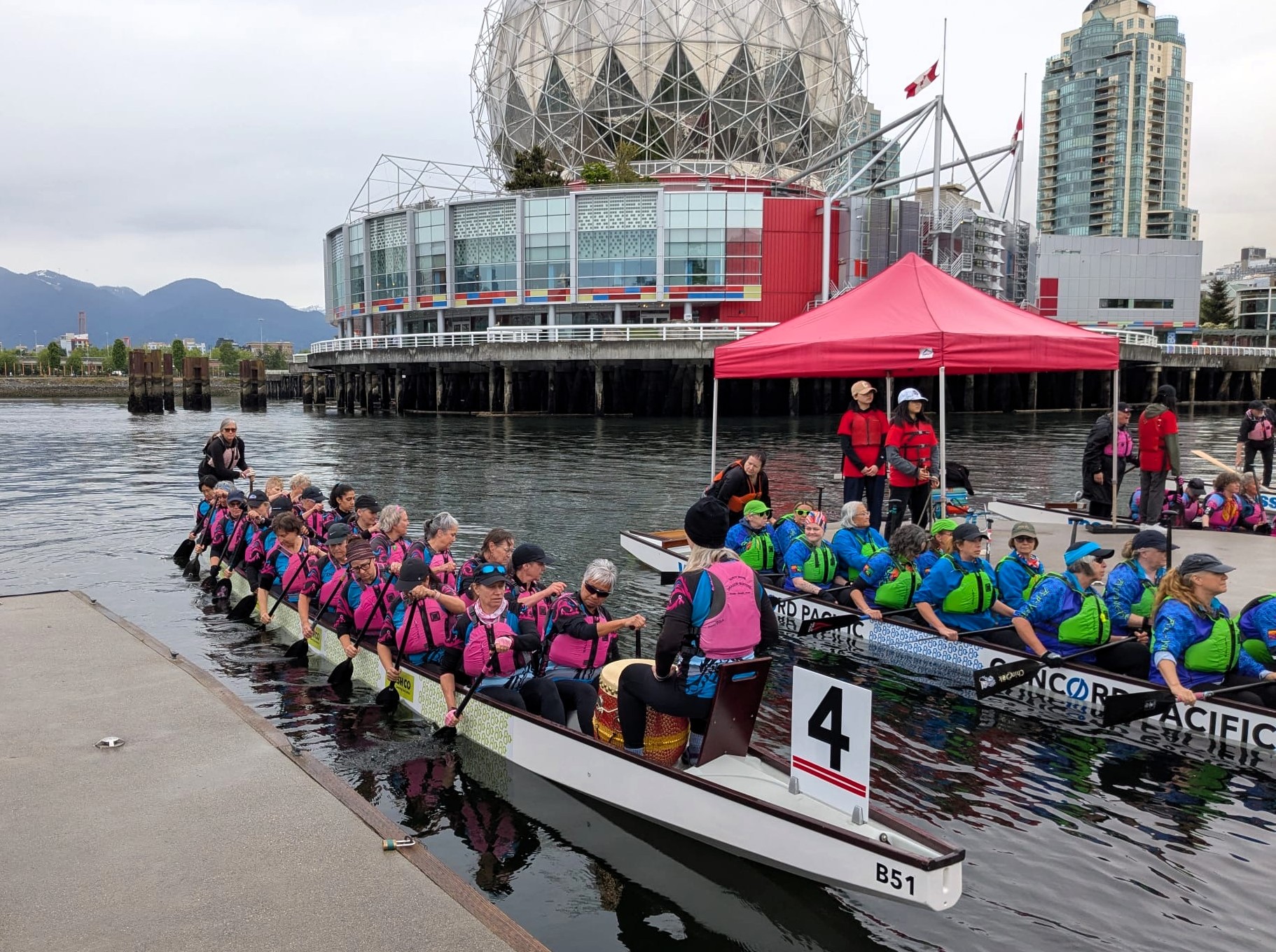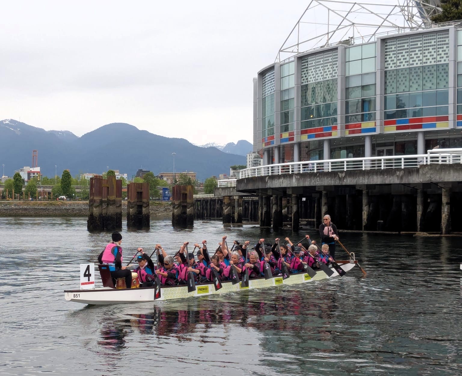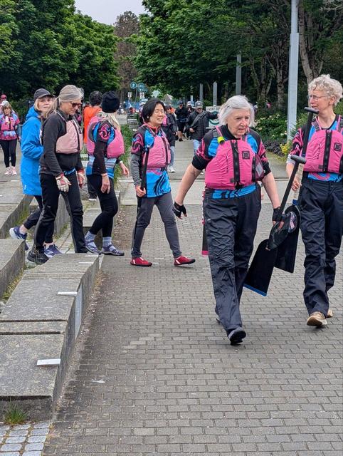 Our second regatta of the season…FCRCC Spring Knockout Dragon Boat Regatta! It was a little cloudy with a few sprinkles of rain but that did not dampen our spirits. Two-200m qualifying races; 1-200m semi-final which earned us a spot in the “A” division Knockout finals. We paddled hard with 3 more back-to-back races as we made it to the final knockout round but finished just out of the medals!